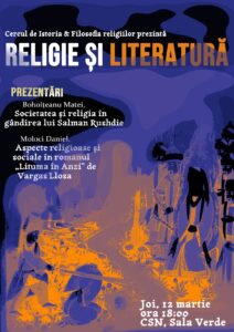 Sub titlul Religie și literatură, joi, 12 martie 2026, începând cu ora 18:00, s-a desfășurat în Sala verde a Colegiului „Sfântul Nicolae” o nouă sesiune a Cercului de Istoria și Filosofia Religiilor „Mitropolit Irineu Mihălcescu”. În acest context au fost susținute două comunicări științifice de către studenți în anul III la Specializarea Teologie Pastorală. Societatea și religia în gândirea lui Salman Rushdie, comunicare susținută de dl Matei Boholțeanu, a adus în atenția audienței o analiză din punct de vedere religios a controversatei cărți Versetele satanice, volum de beletristică a cărui publicare i-a primejduit în repetate rânduri viața autorului. Dl Daniel Moloci, cu comunicarea Aspecte religioase și sociale în romanul Lituma în Anzi, de Vargas Llosa, i-a familiarizat pe participanți cu realitățile religioase peruane, așa cum sunt ele reflectate în acest roman de referință al literaturii contemporane. Pe lângă rolul informativ al celor două comunicări, acestea au constituit și un pretext de analiză și dezbatere referitor la relația dintre religie și literatură și la percepția postmodernă a religiei.