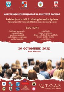 Luni, 20 octombrie 2025, la Sala Sinaxar a Muzeului Mitropolitan din Iași, va avea loc prima ediție a Conferinței Studențești „Asistența socială în dialog interdisciplinar. Răspunsuri la vulnerabilitățile umane contemporane”, un eveniment organizat de Facultatea de Teologie Ortodoxă „Sfântul Dumitru Stăniloae” din cadrul Universității „Alexandru Ioan Cuza” din Iași, în parteneriat cu Arhiepiscopia Iașilor și Primăria Municipiului Iași.