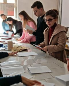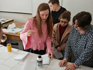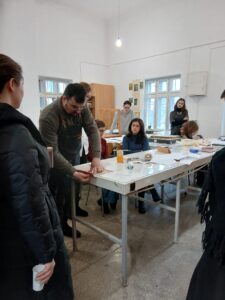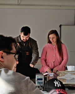 Invitati si organizatori, ne-am bucurat să întâlnim studenți și masteranzi curioși, implicați și dornici să descopere frumusețea și complexitatea artei legătoriei de carte.