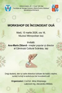 Facultatea de Teologie Ortodoxă „Sfântul Dumitru Stăniloae” vă invită să participați la un workshop de încondeiat ouă, ce se va desfășura marți, 10 martie 2026, ora 16, la Muzeul Mitropolitan din Iași.